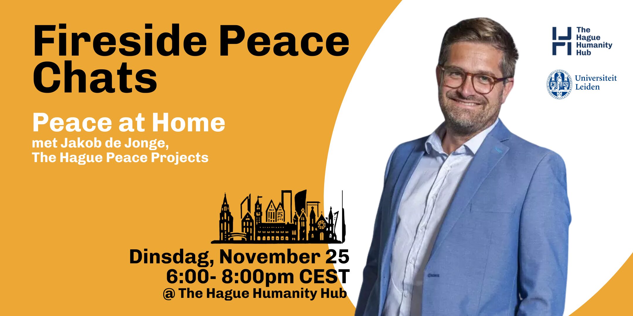 How can we achieve peace in our own city? What scope is there for dialogue as an instrument for peace, amid increasing tensions in Dutch society? Come to the upcoming edition of Fireside Peace Chats, where we will talk to Jakob de Jonge, chair of The Hague Peace Projects, about ‘Peace at Home’. Against the backdrop of global geopolitical instability, this evening offers an opportunity to reflect on how peace can be achieved at the local level, the balance between security and solidarity, and what vigilance means in an increasingly militarised world.