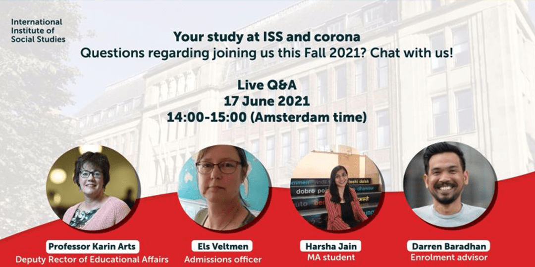 This webinar is designed to ease your transition from a prospective student to a student of ISS in the future. During the session, Harsha Jain who is a current MA student, Els Veltman-van der Weele, ISS Admission Officer and the Deputy Director of Education ISS, Prof. Dr Karin Arts will be present to provide you with information on studying at ISS this year. ISS Enrolment Advisor, Darren Baradhan, will moderate and facilitate the Q&A session to get your questions answered.