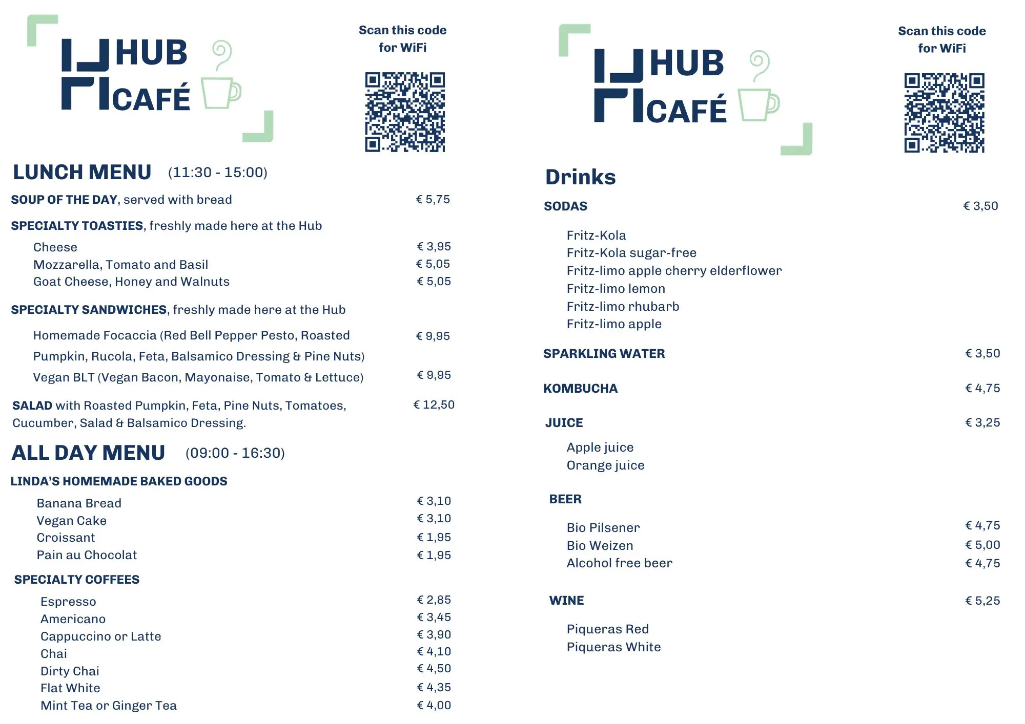 Our menu is entirely vegetarian, with all coffee options available with dairy or plant-based milk alternatives at no additional cost. Wherever possible, we prioritise Fair Trade, organic, and locally sourced ingredients. Our coffee is supplied locally in The Hague.