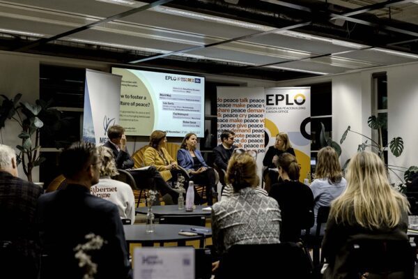 Director of EPLO (European Peacebuilding Liaison Office), Sonya Reines-Djivanides, moderated a panel discussion addressing the question of what it means to foster “a culture of peace”. The panel speakers were Marit Maij (European Parliament, Partij van de Arbeid), Lex Gerts (Ministry of Foreign Affairs, Netherlands), Rolien Sasse (PAX) and Ted Holmquist (Mercy Corps).