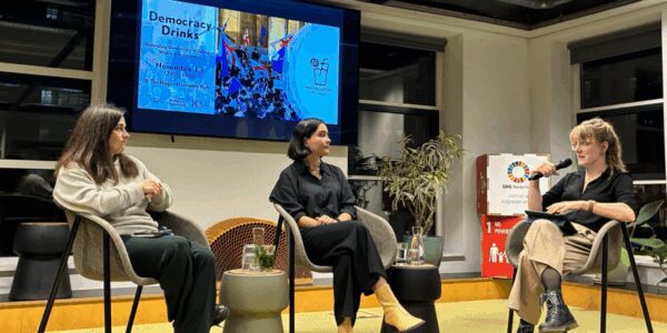 By joining the Democracy Drinks, you can engage with leading experts through moderated conversations and interactive Q&A sessions on current topics related to democracy. Finish the evening with networking drinks, where you can discuss the topic of the evening, connect and exchange insights with fellow attendees.