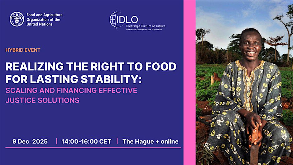 Overview Join us as we discuss how to ensure everyone has access to food, and how to fund these efforts! Realizing the right to food for lasting stability: Scaling and financing effective justice solutions FAO and IDLO invite you to join a hybrid dialogue engaging stakeholders in the rule of law and right to food communities, […]